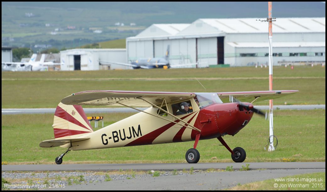 Cessna 120 G-BUJM taxies for departure from runway 26, destination RNAS Yeovilton