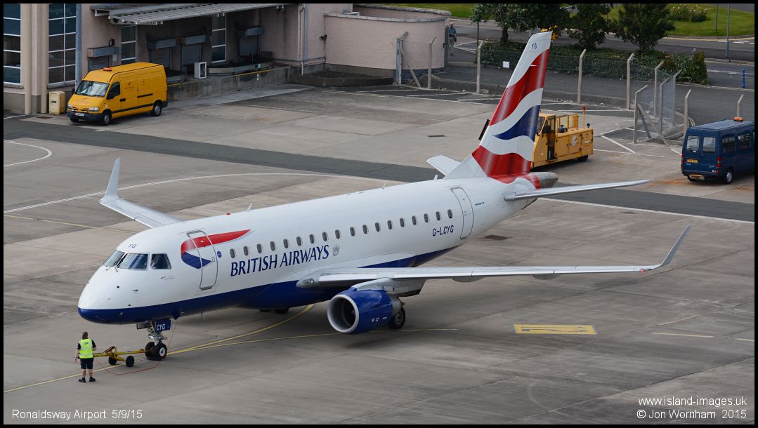 BA Cityflyer Embraer ERJ170 G-LCYG has just completed pushback operating the weekly charter flight to Palma