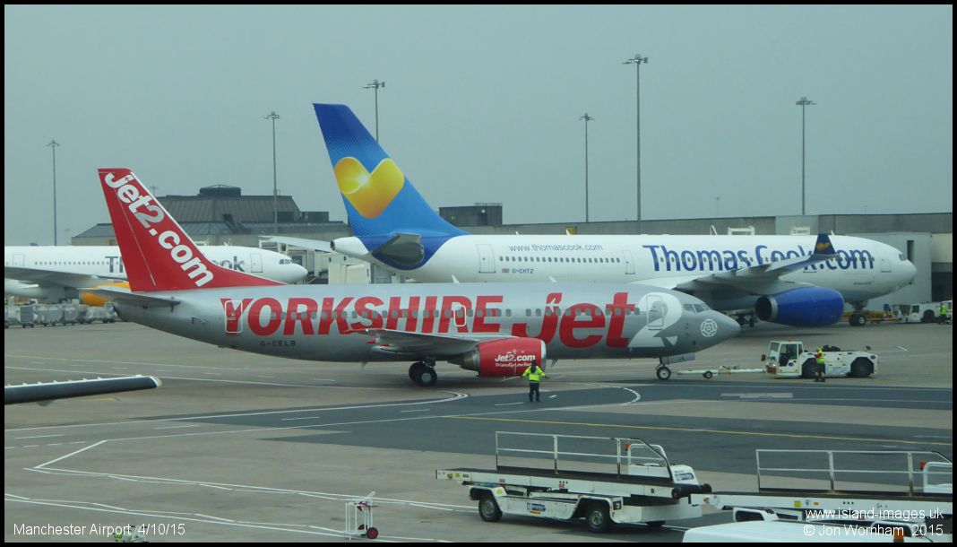 'Yorkshire Jet!' Jet2.com Boeing 737-300 G-CELB being pushed back at Manchester