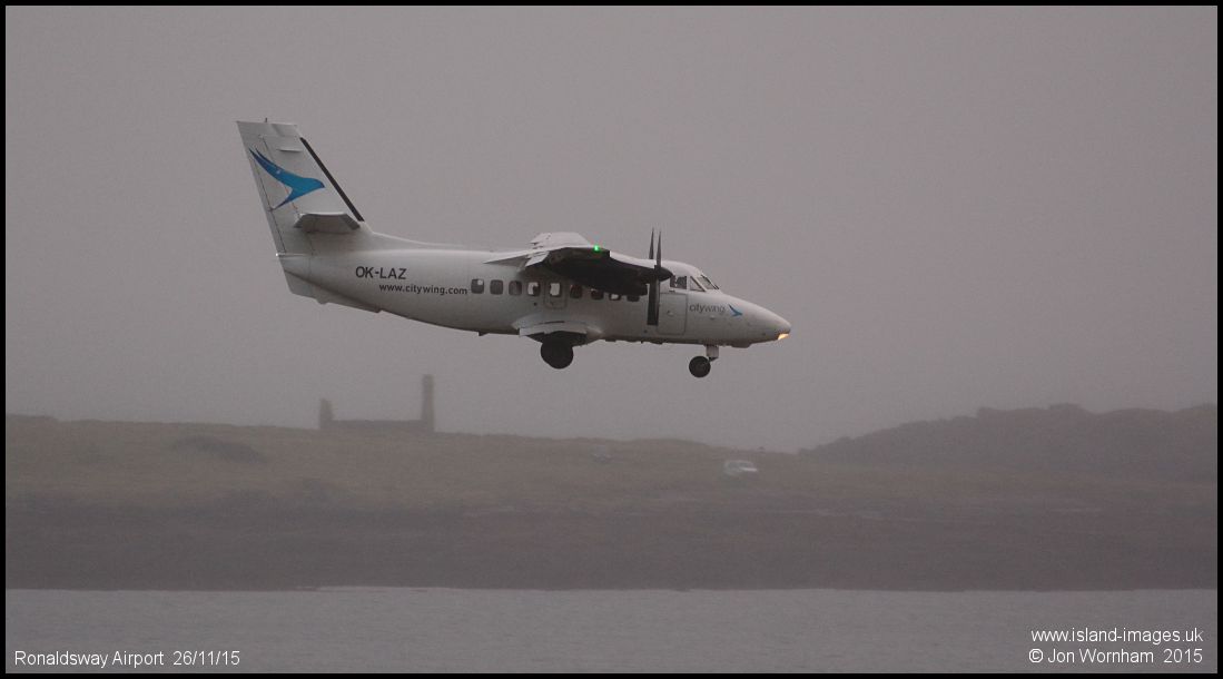 Van Air Europe Let 410 OK-LAZ on final approach through a rain shower, operating a Citywing service from Belfast City airport