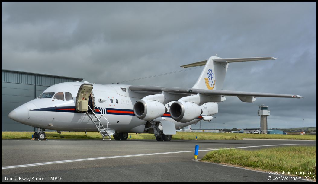 RAF BAe 146 CC2 ZE700 from 32 Sqn (The Royal) at Ronaldsway during a refuelling stop during a crew training flight