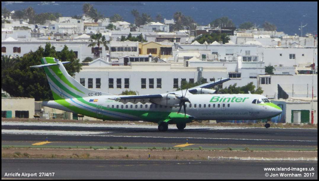 Binter ATR72 EC-KSG touches down on Arricife's runway 21, operating an inter island flight