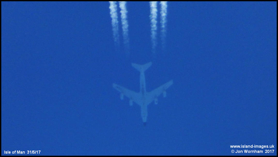US Air Force RC135V 'Rivet Joint' 64-14846 callsign 'Olive 56' passes westbound over