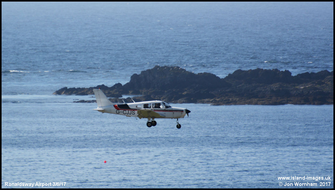 Piper Cherokee Warrior G-CJJS on final approach to runway 26 at Ronaldsway