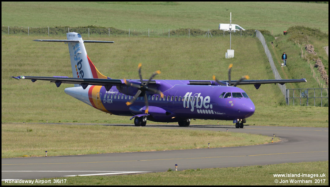Stobart Air ATR72-500 EI-REM lines up on runway 26 with a FlyBe service to Manchester