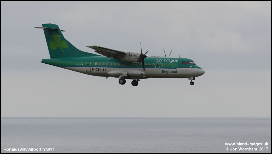 Stobart AIr ATR42-300 EI-CBK on final with an Aer Lingus Regional service from Dublin