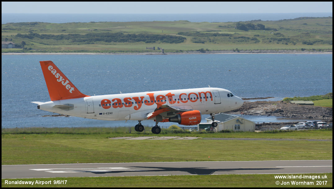 EasyJet Airbus A319 G-EZAO about to touch down on runway 26 arriving from London Gatwick