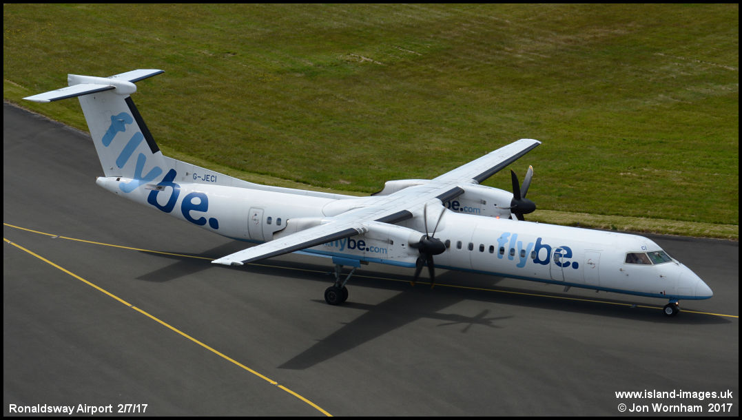 FlyBe Dash 8 G-JECI taxies to the apron after arriving from Birmingham