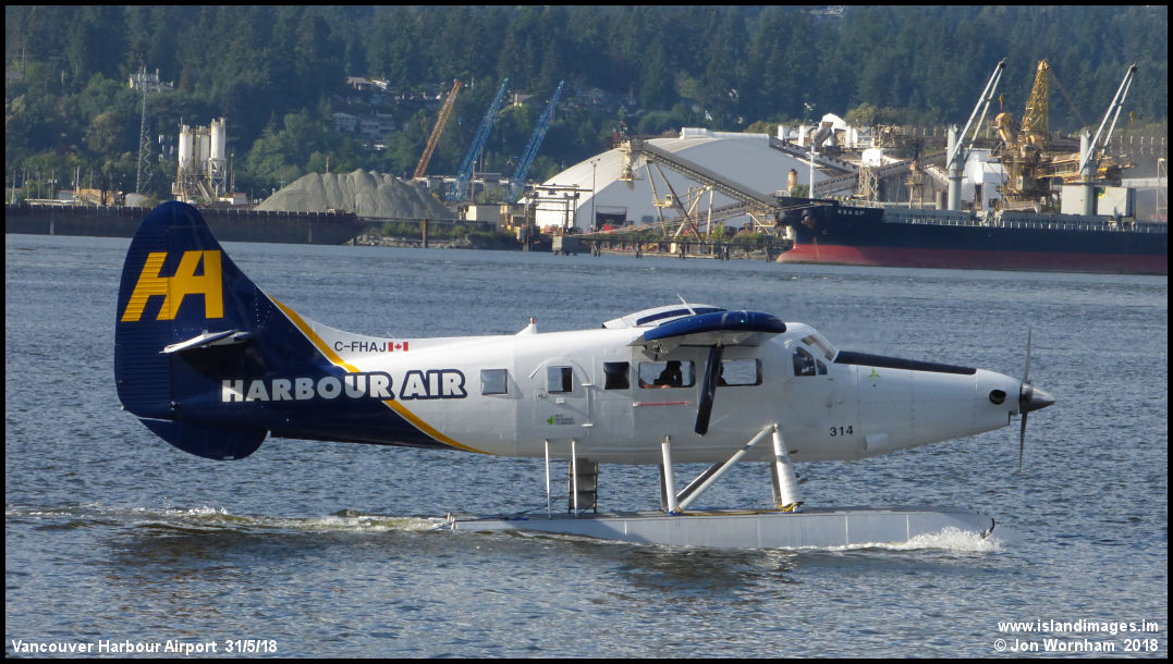 Harbour Air Turbine Otter C-FHAJ (314) taxies for departure. Harbour Air operates a mix of scheduled and sightseeing flights from Vancouver Harbour.