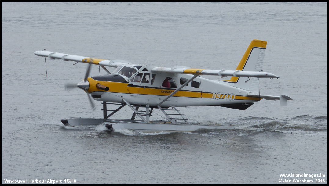 Kenmore Air Turbine Beaver N9744T taxies in to the pontoons.