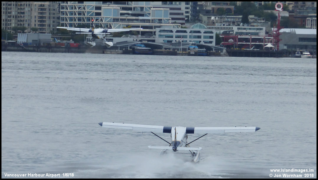 As the Cessna Caravan is climbing away, a Beaver is starting its take-off run.