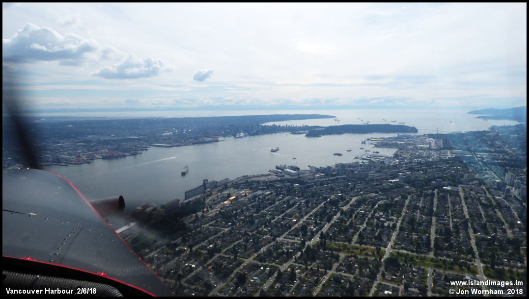 Heading back towards the city and over North Vancouver approaching the harbour.