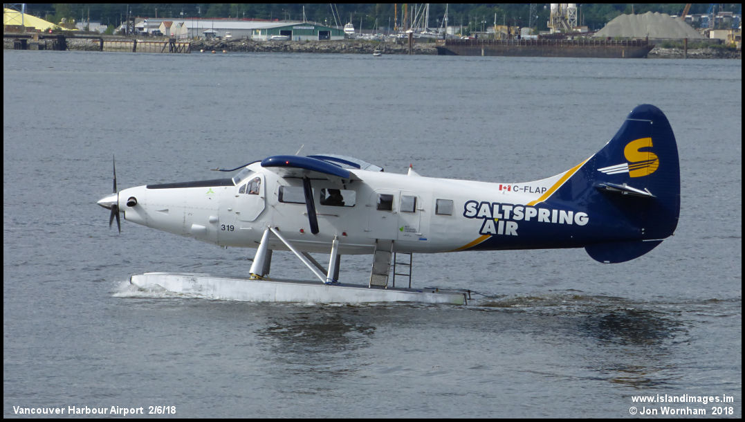 Saltspring Air liveried Turbine Otter C-FLAP (319) taxies in.