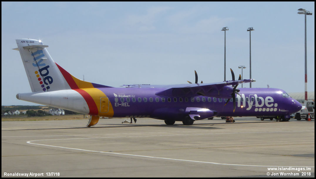Stobart Air ATR72-500 EI-REL parked after arriving at Ronaldsway on a FlyBe service.