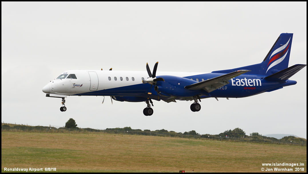 Eastern Airways Saab 2000 G-CFLU on short final to runway 26