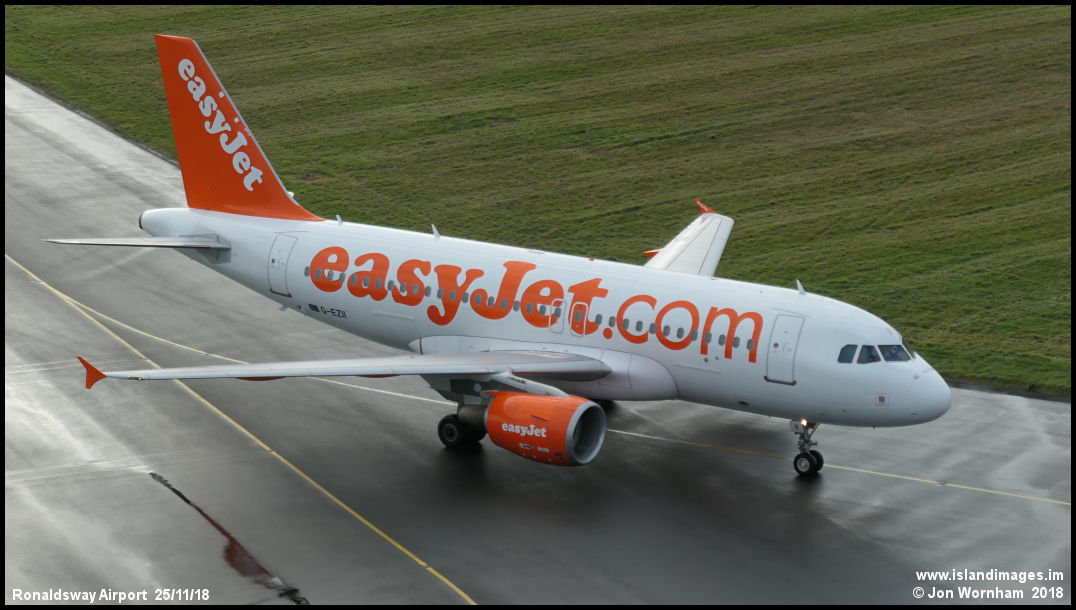 EasyJet Airbus A319 G-EZII taxies to the apron.