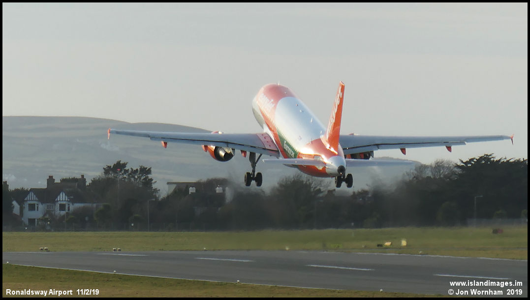 EasyJet Airbus A319 OE-LQY climbs steeply away from runway 26.