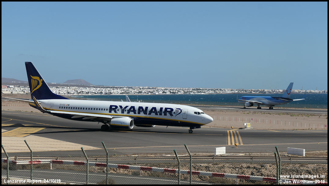 Ryanair Boeing 737 EI-FEI waits to depart for London Stansted airport.