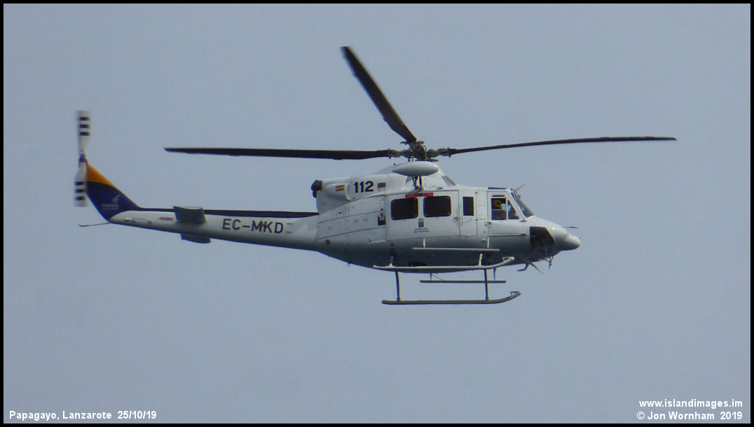 Bell 412 EC-MKD passes by. This aircraft is winch equipped and I'm assuming that it is used for Search and Rescue operation.