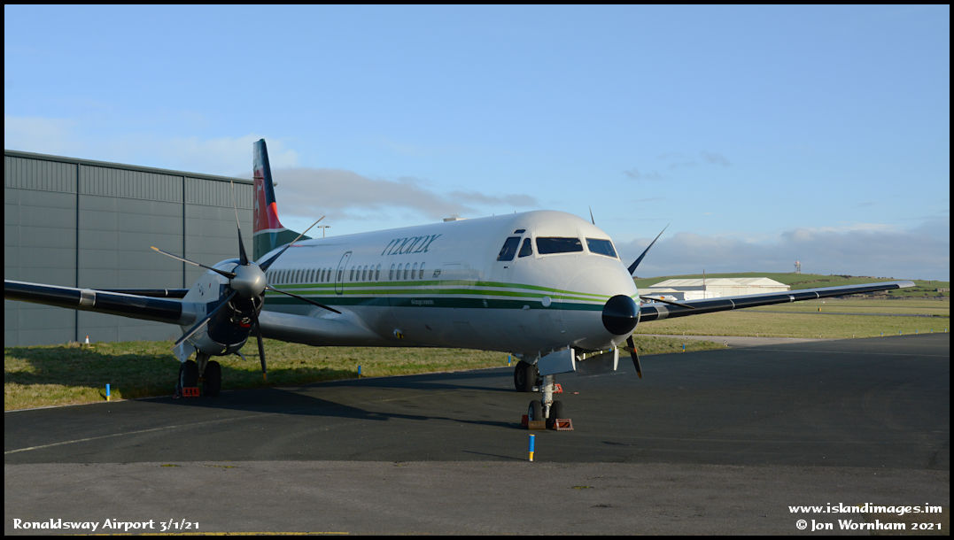 Preserved ATP 'G-MAUD' stands just insed the airport security fence adjacent to the