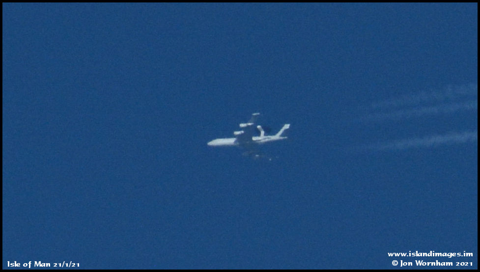 RAF Boeing Sentry AEW1 ZH101 captured in an orbit centred just to the north of the Isle of Man at 31,000ft. It remained there for quite a while before heading away. Callsign Nato32/Magic82.