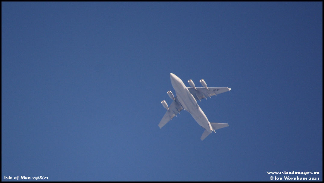 USAF C17 Globemaster III 01-0193 'Reach649' passing over the island descending through around 22,000 ft, inbound to Belfast Aldergrove.