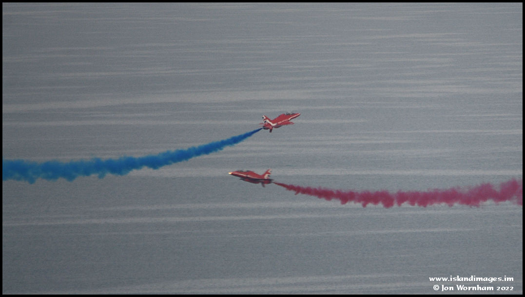The Red Arrows Synchro Pair. These manoeuvres are performed well below us, as we're looking down from 500 ft above sea level.