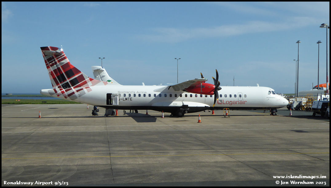 Loganair ATR72 G-LMTE parked on stand 9 at Ronaldsway.