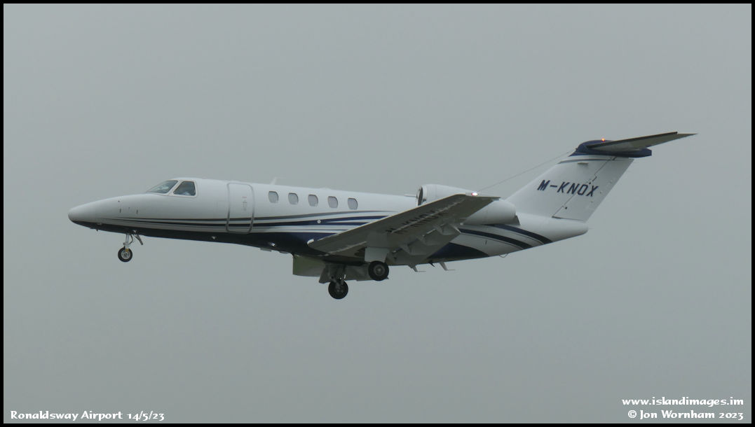 Cessna CitationJet CJ4 M-KNOX about to land on runway 26