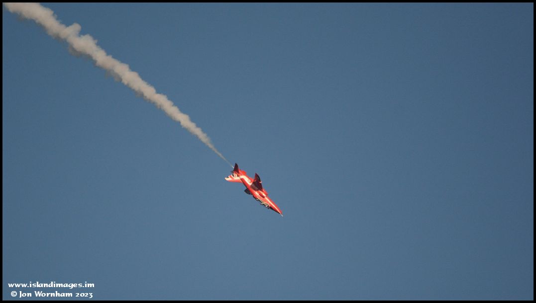 One of the synchro pair rolls off the top of a loop before heading down towards the sea....