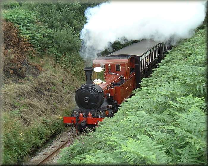 No 12, Hutchinson, emerges from the narrow rock cutting, August 2000