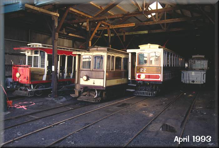 The MER has a secondary depot at Laxey, Cars No 32, 21 and 22 seen inside.