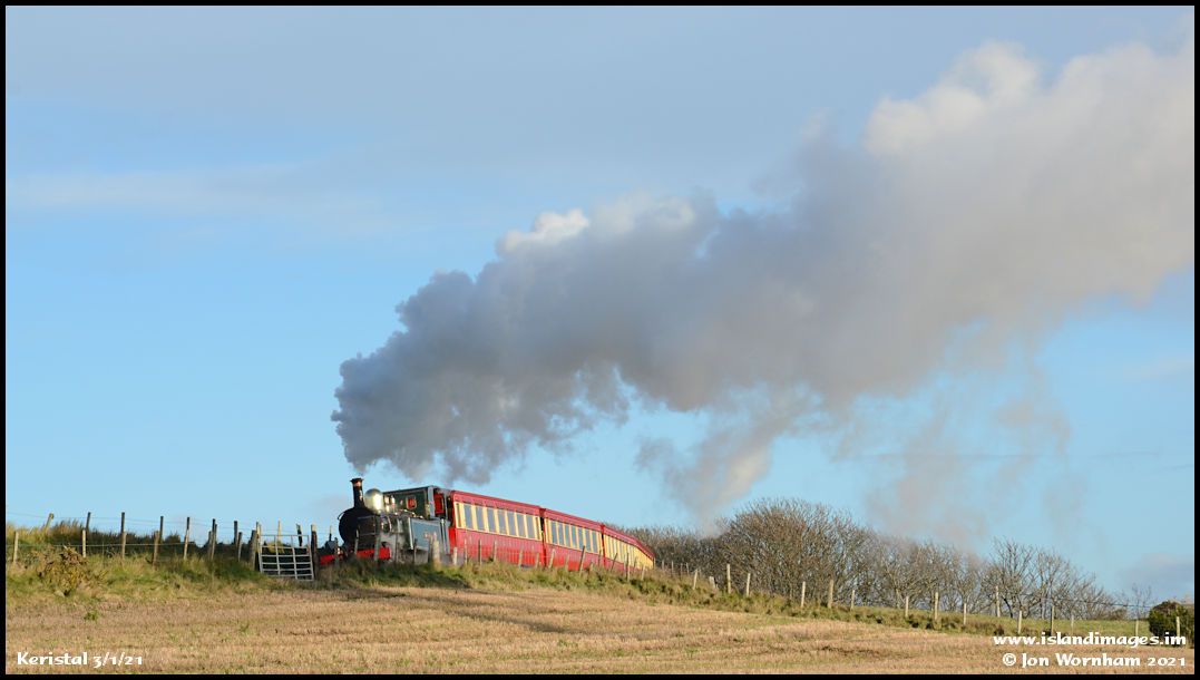 I've moved onwards down the line a bit, driving very carefully as the roads are quite icy, but in time to catch 'Kissack' rounding the curve at Keristal.