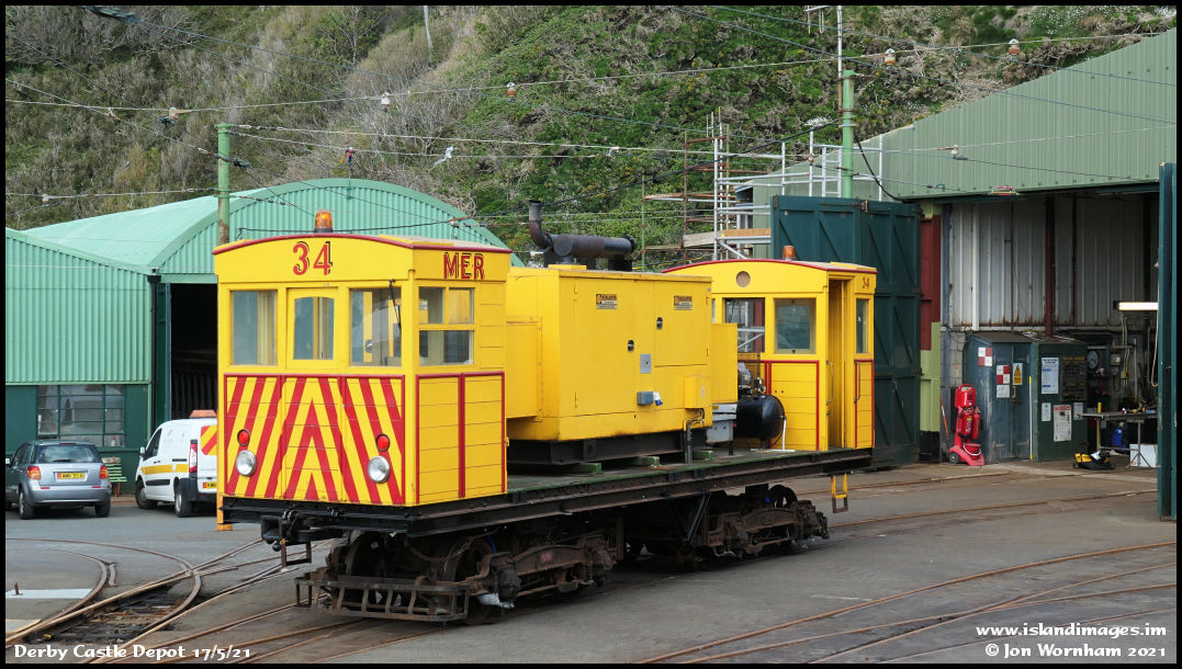 In the depot yard, diesel electric loco No 34 was undergoing some work.