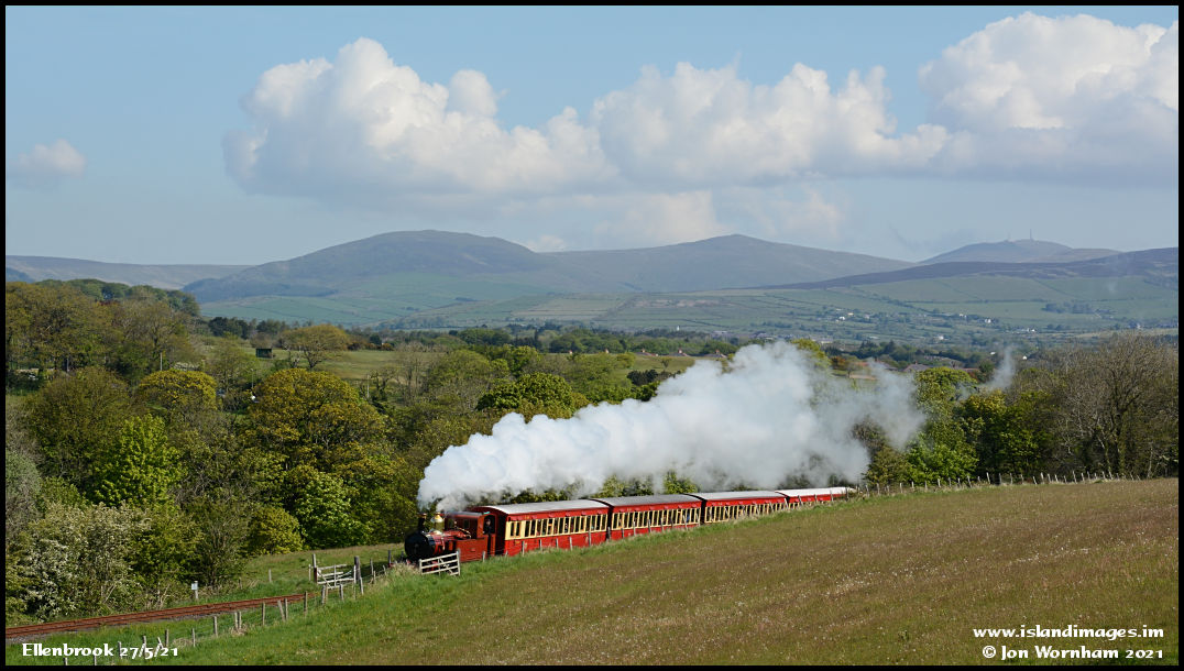 'Loch' emerges from the cutting at Keweigue, climbing away from Douglas with a great view of the hills behind.