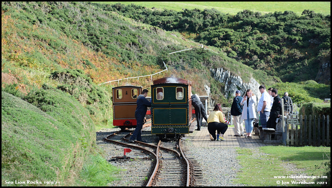 'Brown Bear' and 'Sea Lion' at Sea Lion Rocks station, GGR standard 'two train' operating procedure involves changing over loco's here.