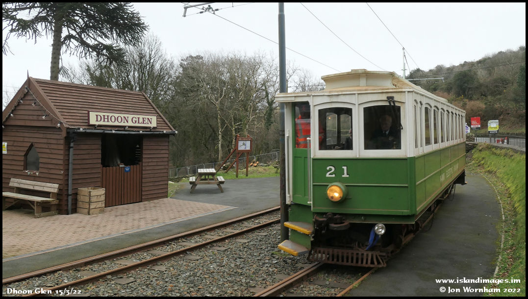 Catching up with No 21 again as it passes the Dhoon Glen stop, en-route between Laxey and Ramsey.