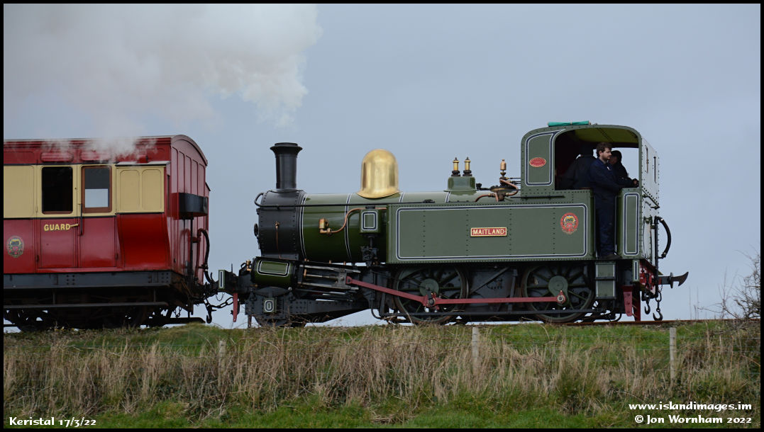 A nice side on view of 'Maitland' as she passes by above the road level. Soon after this point steam will be shut off for the long descent into Douglas.