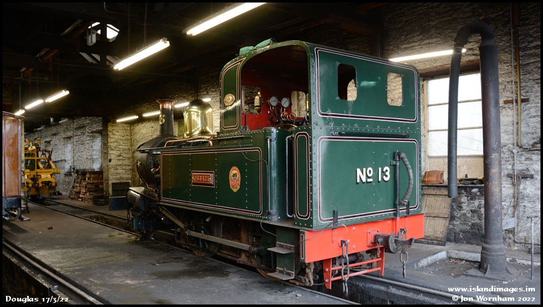 Resting inside the engine shed is No 13 'Kissack', in the darker shade of green. At present 'Kissack' and 'Loch' are handling all of the passenger trains with 'Caledonia' temporarily out of service.