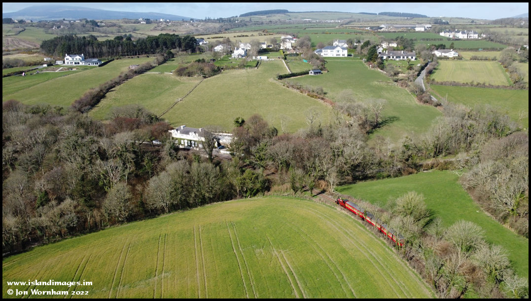 The Mini 2 drone isn't the fastest, but I managed to fly over to get the 'sunny side' of the train as it approached Port Soderick station.