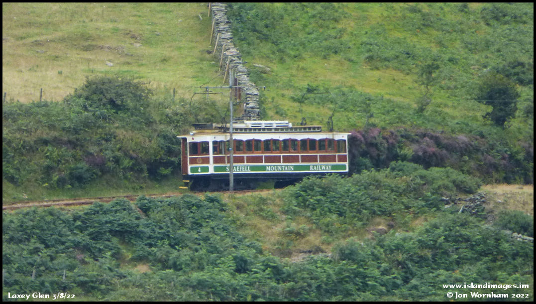 Car No 4 has just crested the small climb and is about to continue downhill towards Laxey.