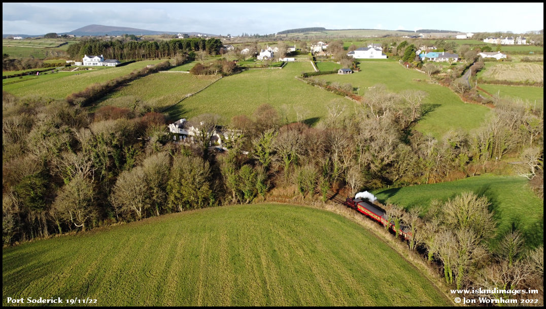 'Caledonia' whistles before entering Port Soderick Station. The line is on a continuous curve here, through the station as well.