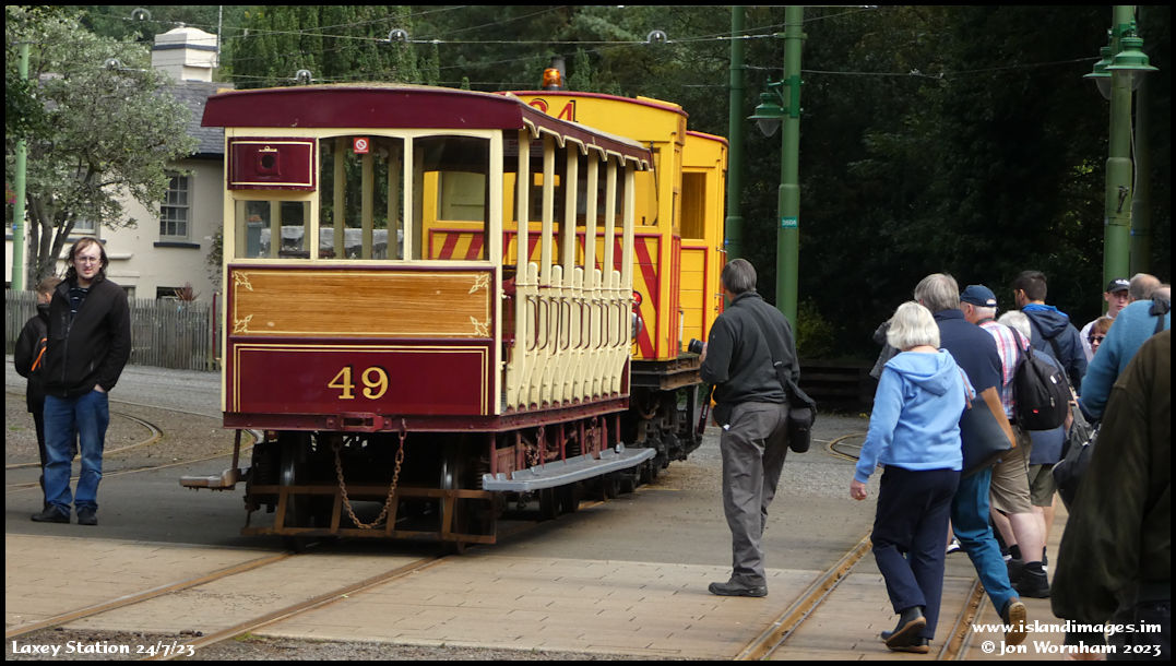 As No 34 comes to a halt in the station, it looks like there is going to be a rush for seats on trailer No 49! Trailer 49 was one of the six original trailers constructed for the line's opening from Douglas to Groudle in 1893 and originally No 11.