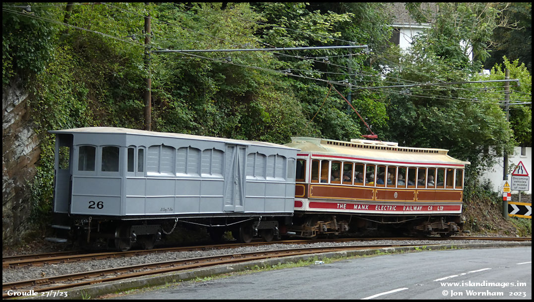 Nos 6 & 26 about to round the tight curve that takes the line across Groudle Glen on an impressive (from below!) viaduct. I'm going to head onwards to Laxey now.