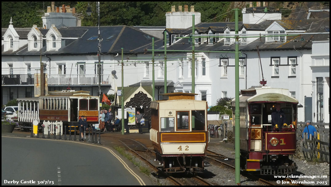 Car No 1 runs around trailer No 42 with Car 20 awaiting departure in the station.