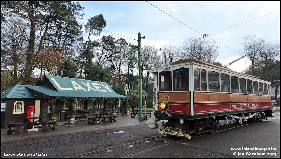 Car No 20 has now arrived from the sheds to operate the second shuttle. The two trams will be in use into the evening, passing each other around the summit of the MER at Bulgham.