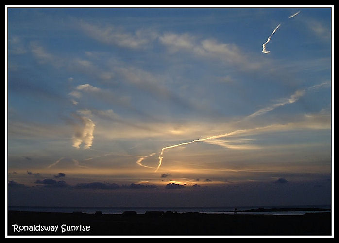 Clouds and vapour trails in a dawn sky at Ronaldsway