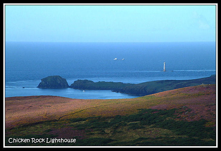 The Chicken Rock lighthouse, from above Cregneash