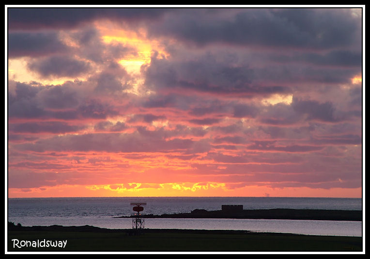 A beautiful dawn sky over Fort Island as seen from the control tower at Ronaldsway
