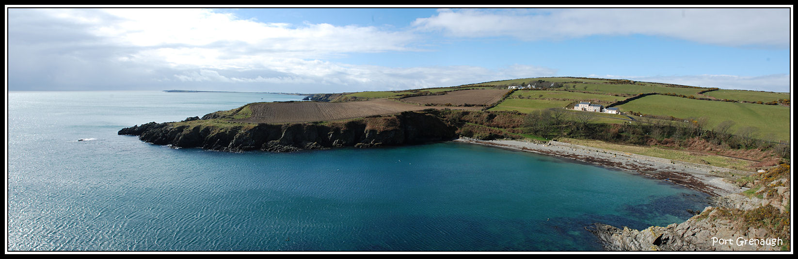 A panoramic view over Port Grenaugh from the promontory fort